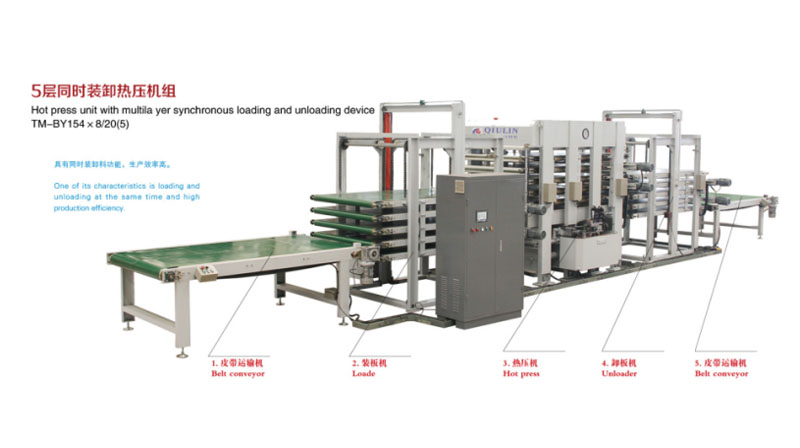 We produced hot press unit with multilayer synchronous loading and unloading device in 2013.