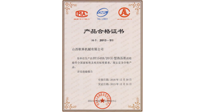 BY21 hot press, BY624X8/16, BY154X8/20(5) passed the inspection from the national woodworking machinery quality supervision and inspection center.